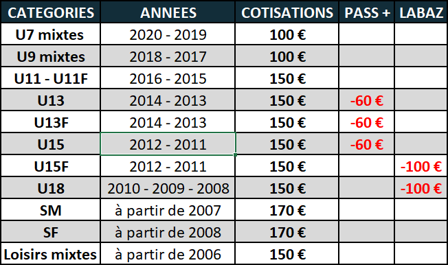 NB: Veuillez noter que vous bénéficierez d’une réduction sur la licence de la saison N+1 équivalent à 50% de votre mutation payée cette année -> Pour les joueurs ayant réglé leur mutation sur la saison dernière, penser à déduire la moitié du montant de la mutation de votre licence pour effectuer le paiement.